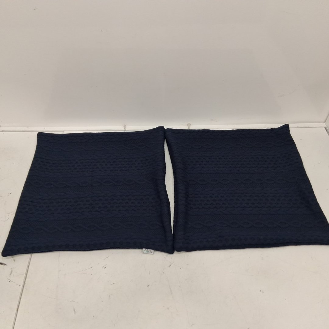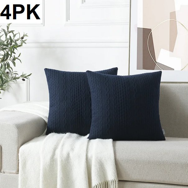 nordeco home farmhouse knitted modern embossed throw pillow covers - 18" x 18" - dark blue