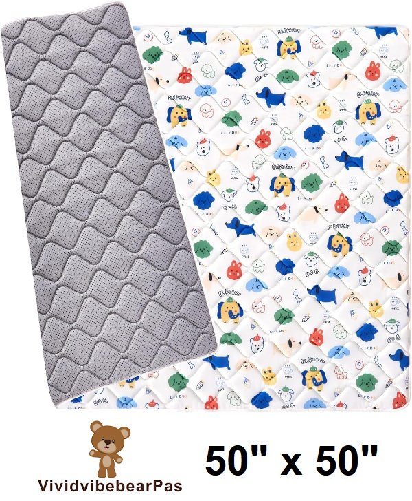 VIVIDVIBEBEARPAS Odorless Premium Foam Foldable Baby Play Mat - 50" x 50" - Cute Animals