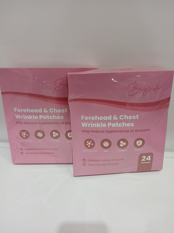 2 (24PK) Bayside Forehead & Chest Wrinkle Patches Set - Hyaluronic Acid Aloe Collagen Vitamin E