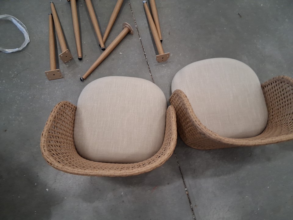 2PK BEACHCREST HOME Donoho Linen Upholstered Rattan Backrest Dining Chairs - 19" SEAT HEIGHT - Natural, Beige