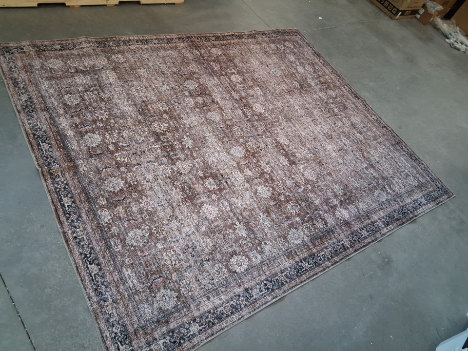 GEORGE OLIVER Machine Washable Rug with Rubber Backing for Living Room Faux Wool Floral Pattern Non-Slip Bedroom Rug for Kitchen Hallway - 8FT x 10FT - GREY/WHITE