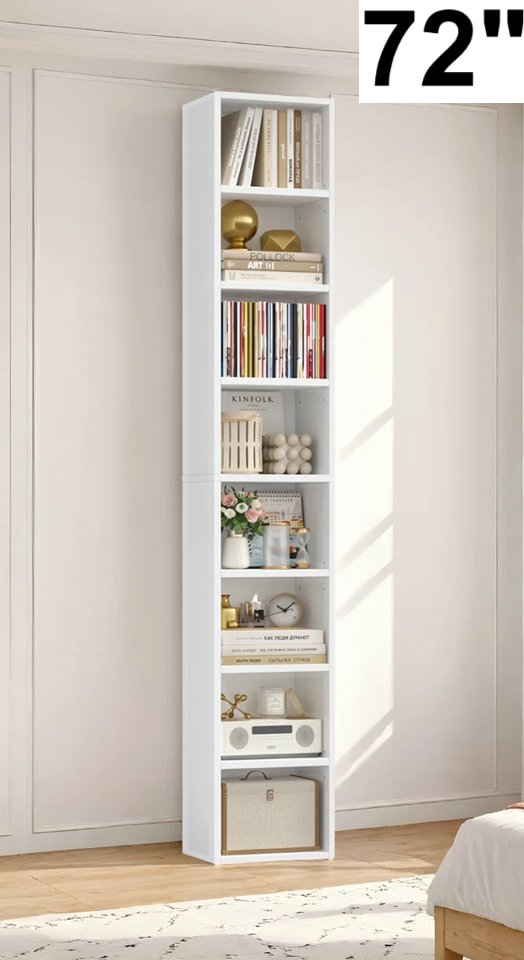 Millwood pines gracyn 8-tier narrow library bookcase - 71.3" x 9.3" x 11.7" - WHITE (MODEL: FPB-046)