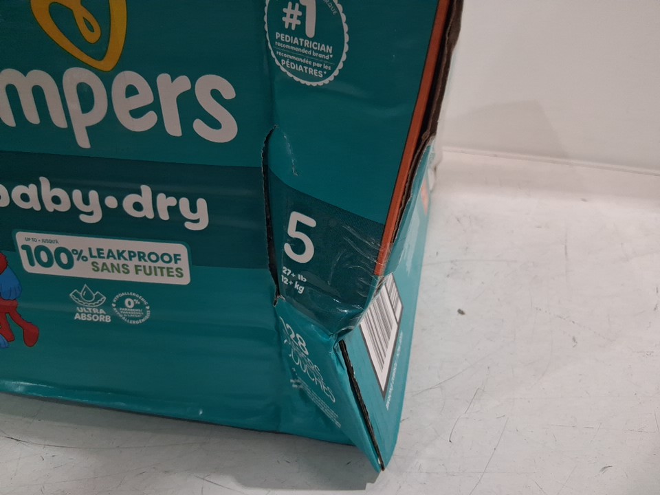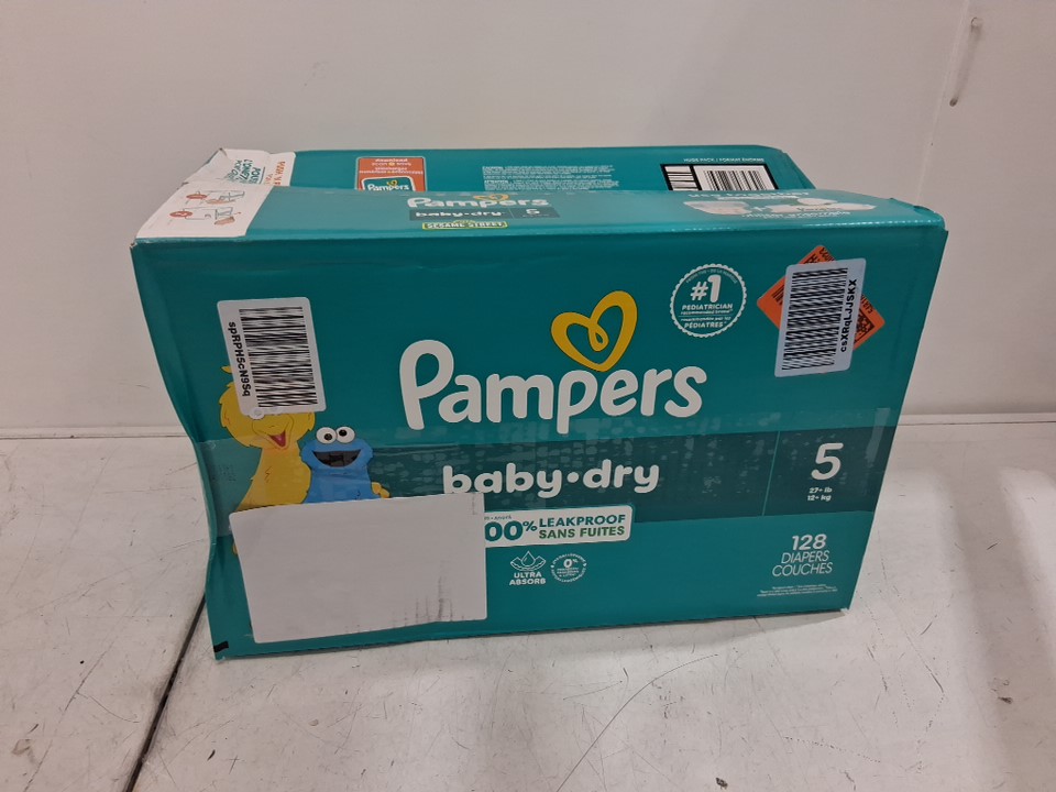 128PK PAMPERS BABY-DRY DISPOSABLE DIAPERS - SIZE 5 - 27+ LBS - SESAME STREET