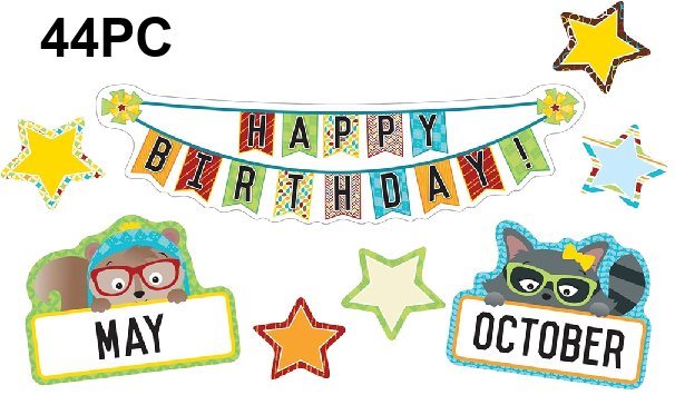 44PC Hipster Birthday Bulletin Board Set for teachers and classrooms - 44PC - Multicoloured