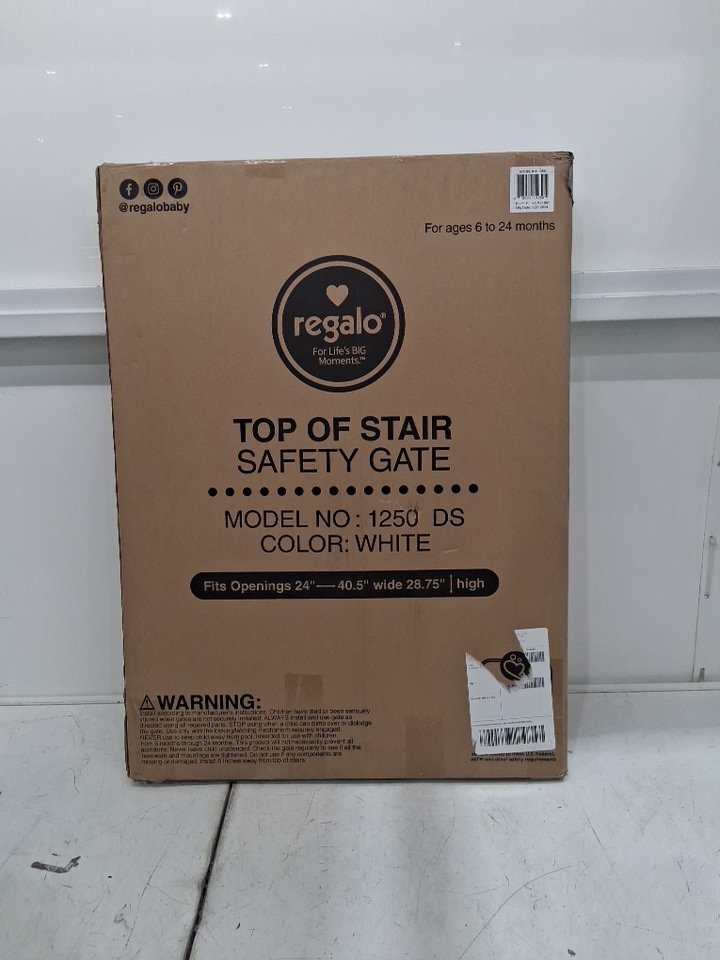Regalo Extra Wide 2-in-1 Top of Stairway and Hallway Safety Gate with Mounting Kit - 29"x24"-40.5" - White (Model: 1250DS)