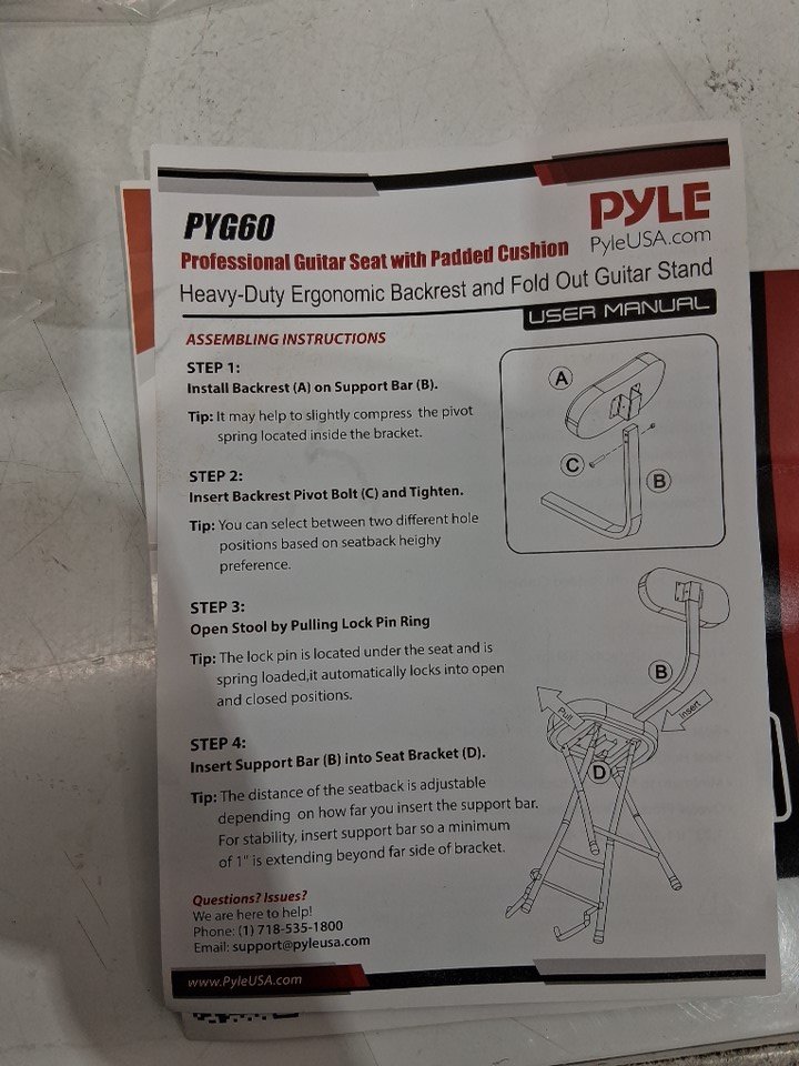 PYLE GUITAR SEAT WITH GUITAR STAND - BLACK (MODEL: PYLE-PYG60)