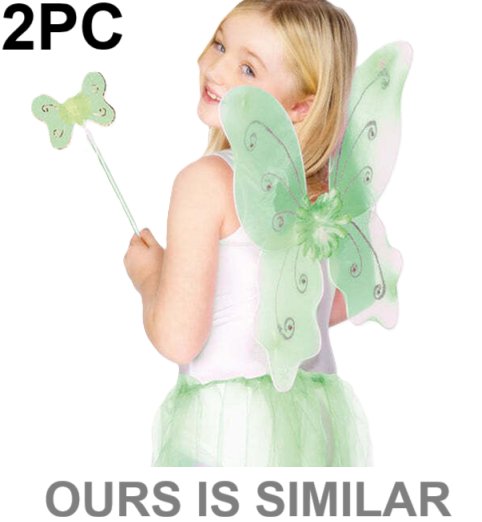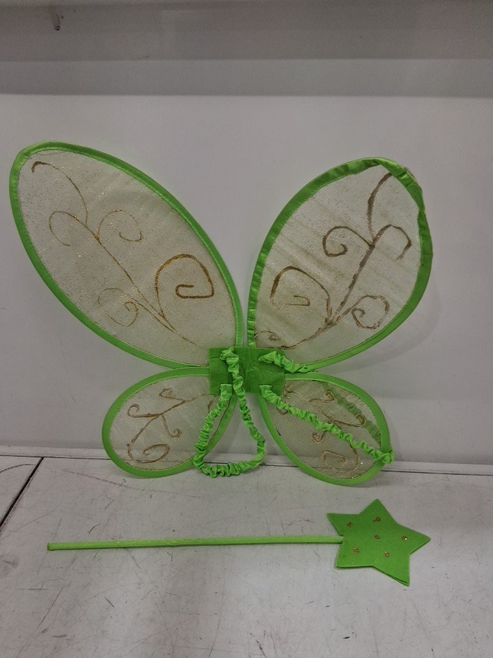 2pc SPARKLE fairy wings and wand set - one size fits most - GREEN/GOLD