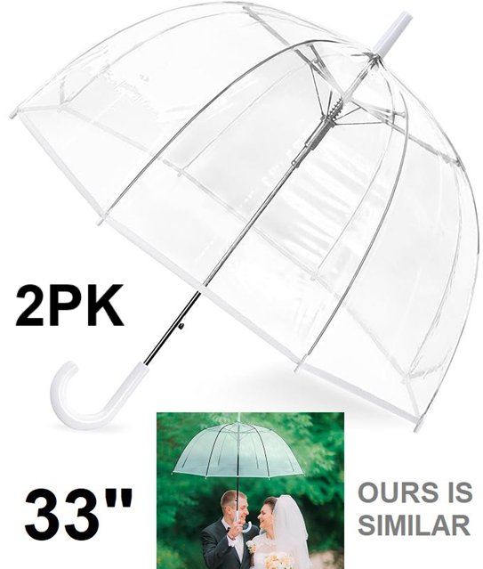 2PK adult windproof plastic Bubble Umbrella - 33" X 32" - clear/white
