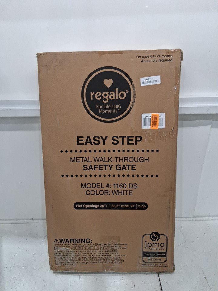 REGALO EASY STEP EXTRA WIDE METAL BABY SAFETY GATE - FITS OPENINGS 29"-38.5" WIDE x 30" HIGH - WHITE (MODEL: 1160DS)