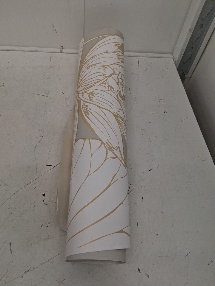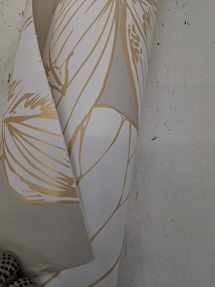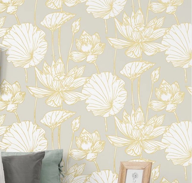 Beachcrest Home Hien Lotus Floral Peel and Stick Wallpaper Roll - 18ft x 20.5" - gold/white/grey
