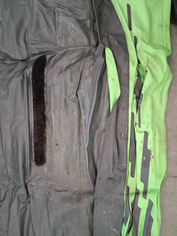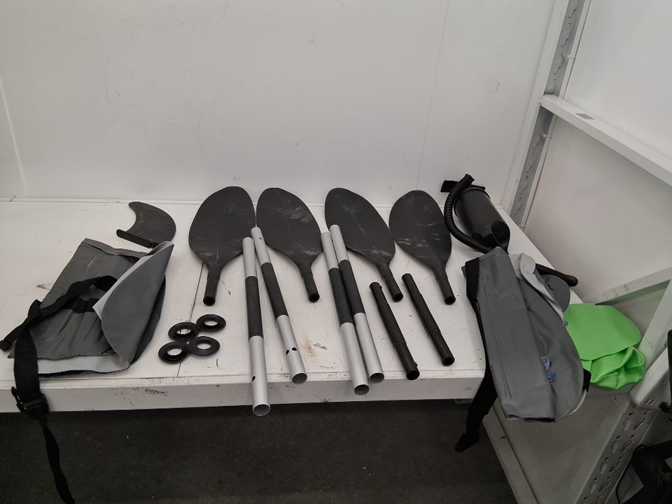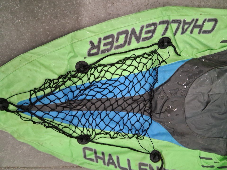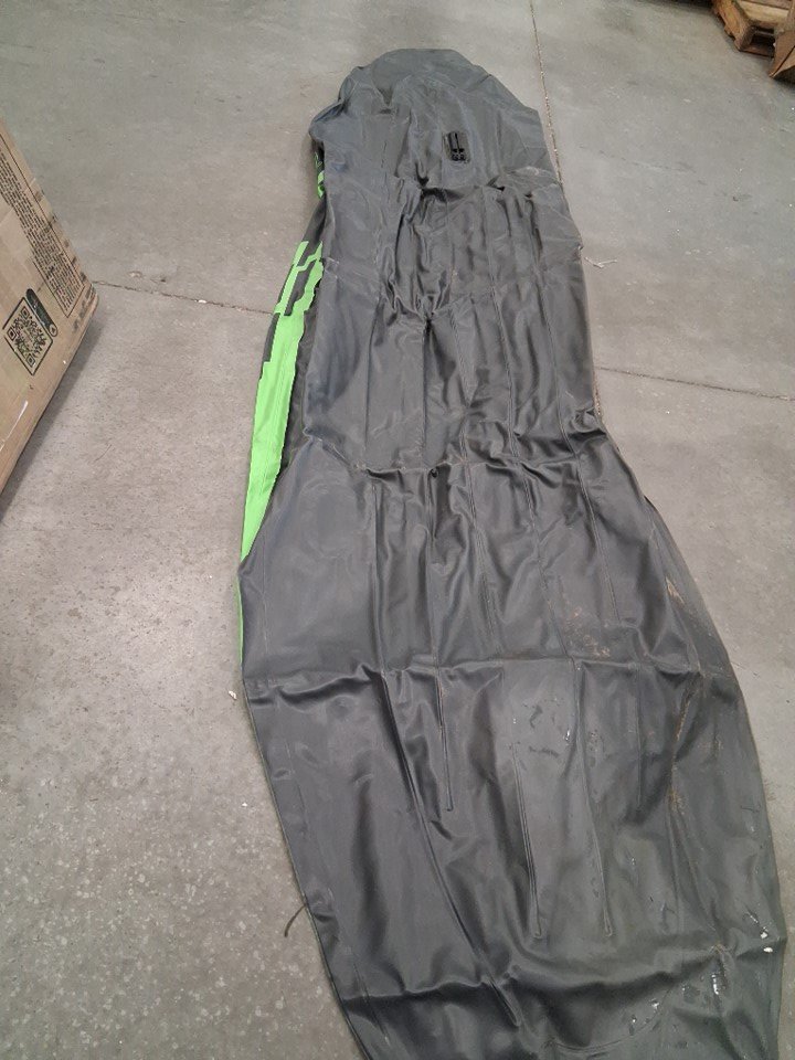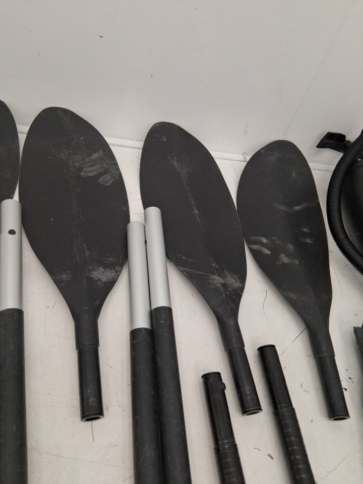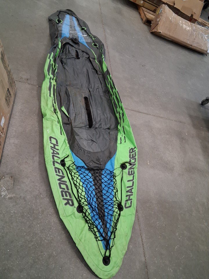 Please note the item shows clear signs of previous use as there is water and sand residue on the kayak and the other parts have minor surface scuffing. The carrying bag has a tear in it (see photos for reference).
