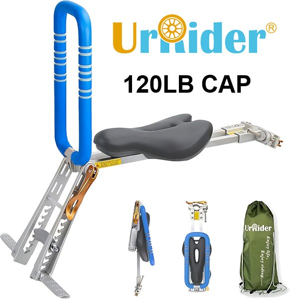 Kid's UrRider Folding Front Mount Bike Seat - 120LB CAP - Blue/Grey (Model: BKS-017B)
