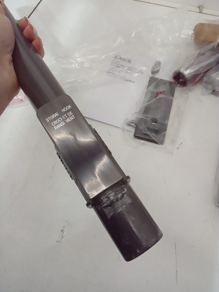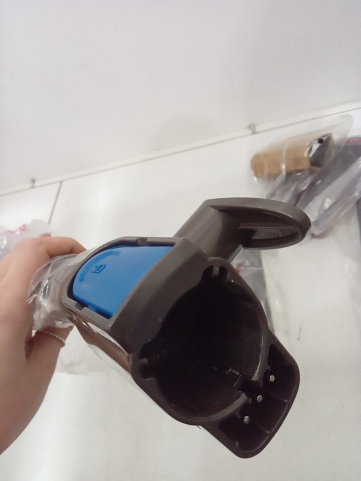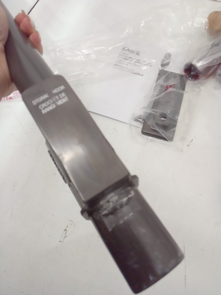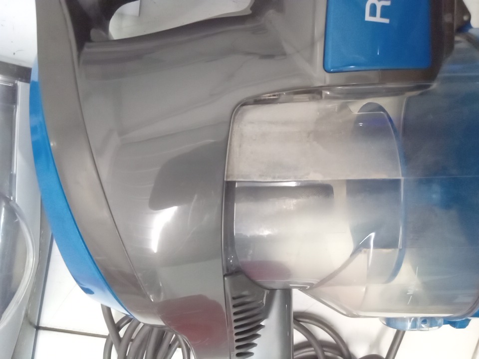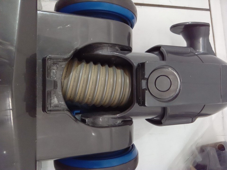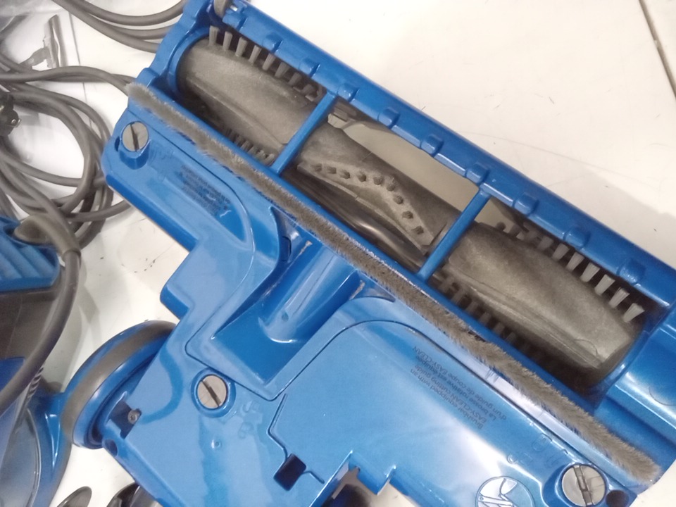 dirt can be seen in bristles and inside collection chamber. there is some white powder substance on vacuum neck connectors.