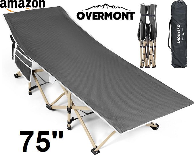 Overmont Oversize Portable Folding Camping Cot with sleeping pad - 28" x 75" - 500lbs Cap - black/GREY