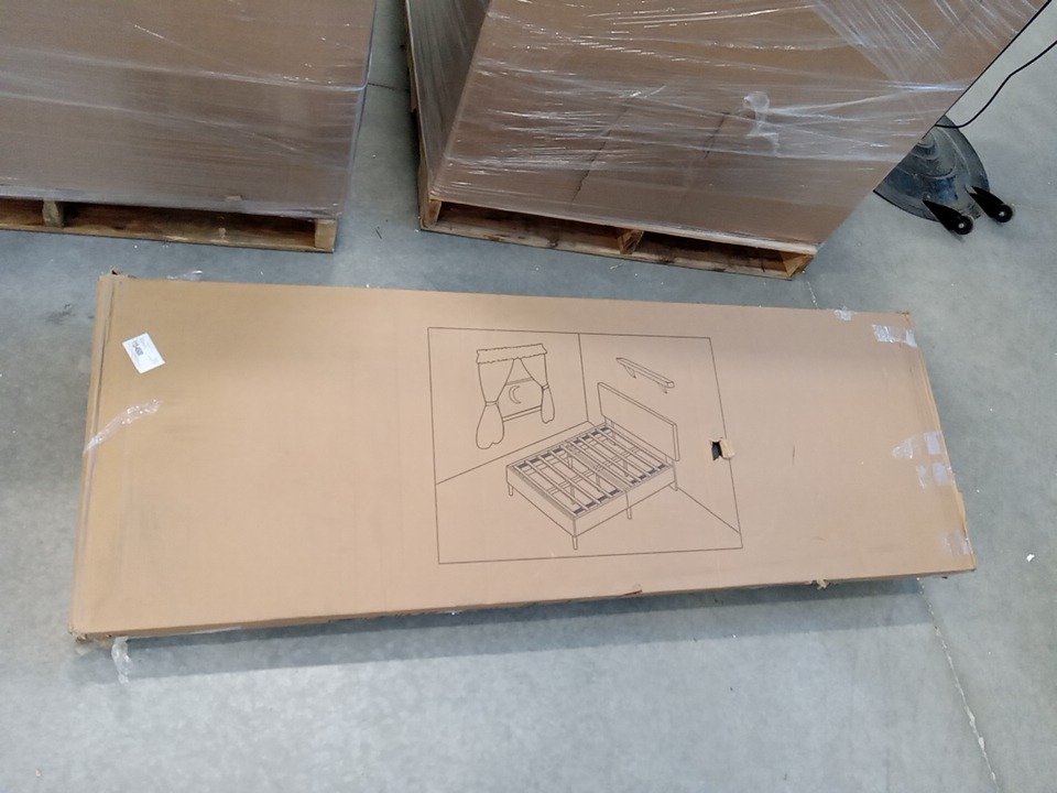 secretland platform bed frame with fabric upholstered headboard - queen - grey (model: 6910b)