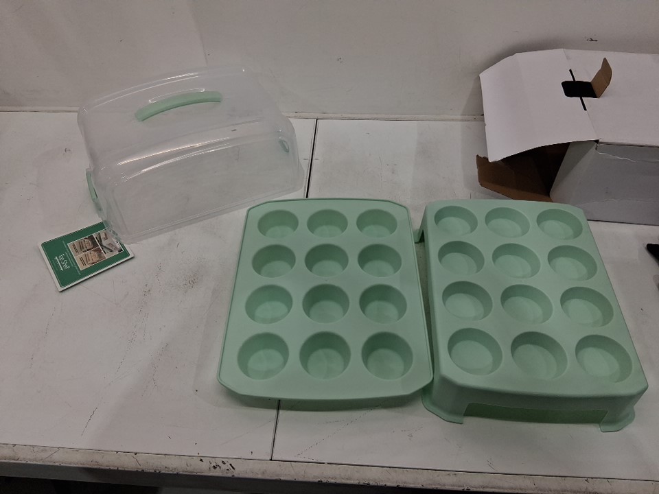 top shelf elements two tier cupcake carrier reusable up to 24 cupcakes - seafoam green