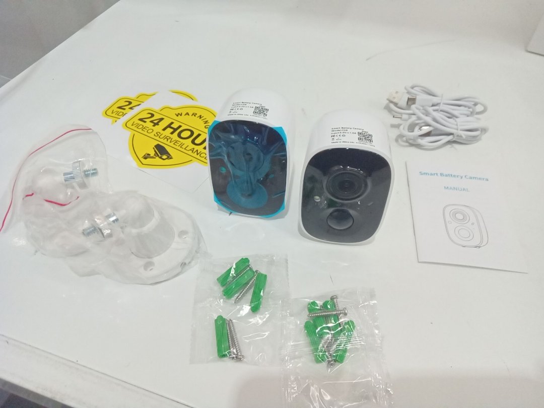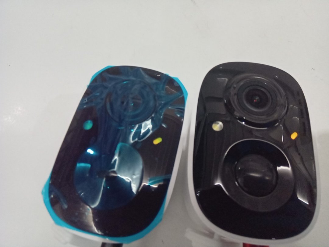 One of the cameras has a scuff on the back but otherwise appears new. Tested for power only.