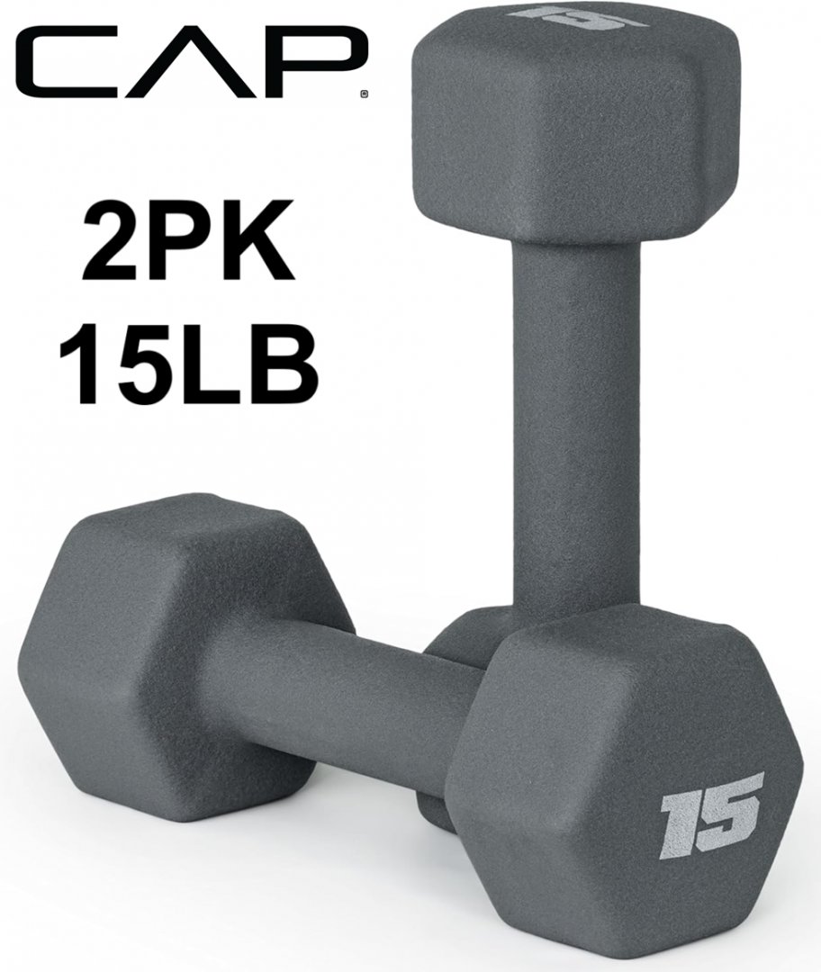 2PK Cap Neoprene Dumbbell Weights - 15LB each - Grey (Model: ‎SDN4PIS-30)