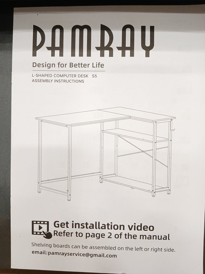 Pamray L-Shaped Computer Desk - 43" x 29.5" - Black