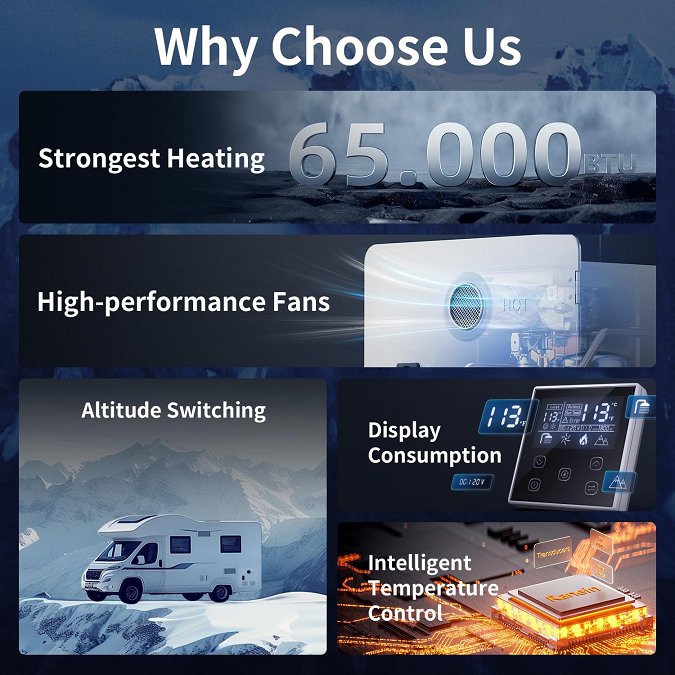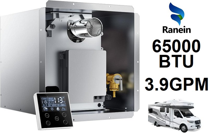 Ranein Tankless RV Water Heater with On Demand Instant Hot Water and Multi-function Controller - 65000BTU - 12V - 3.9gpm - Silver (MODEL :RA65lh-w)