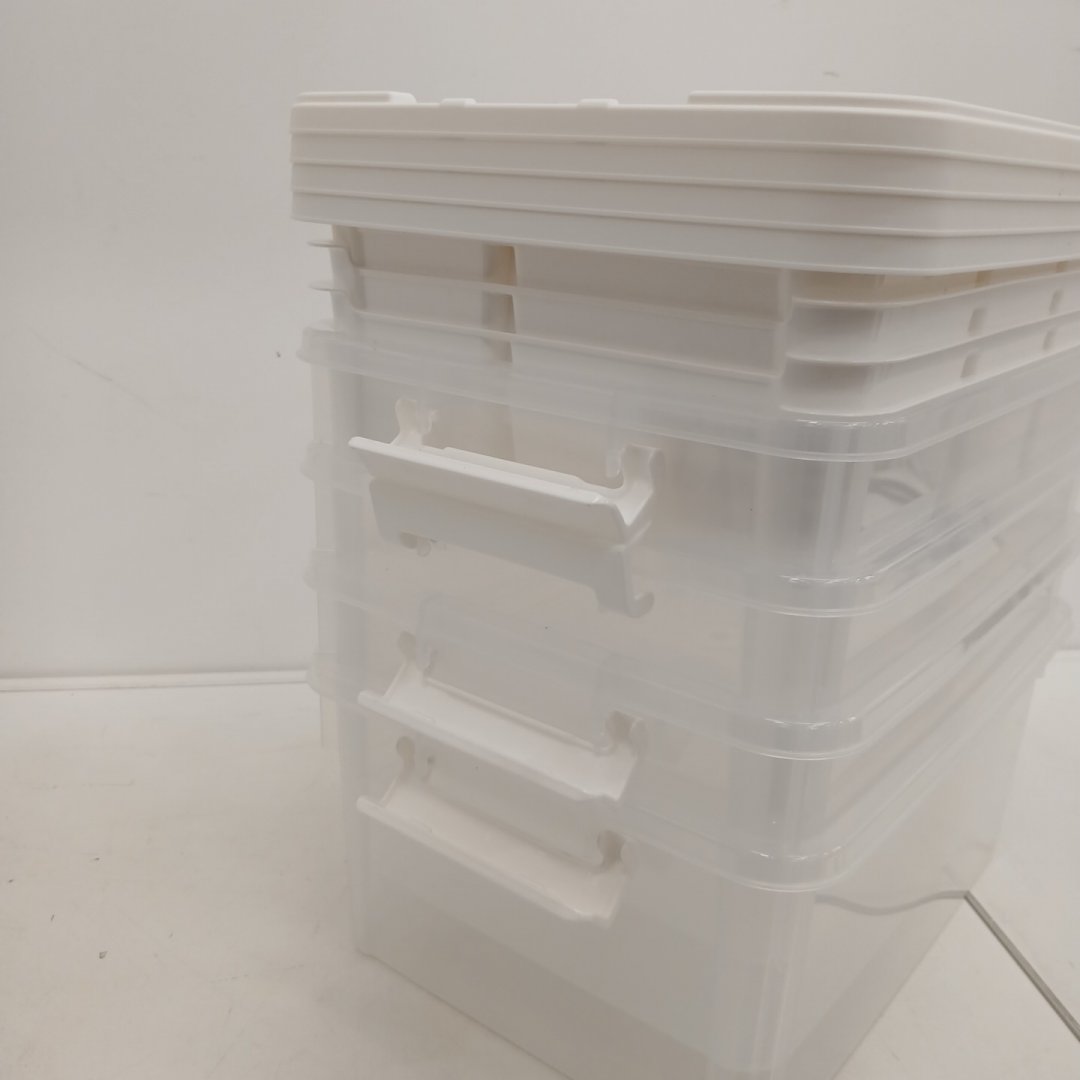 Missing a handle on one of the bins as well as minor scuffs present.