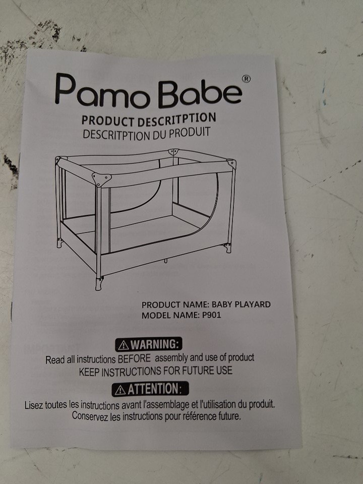 Pamo Babe Portable Crib Baby Playpen with Mattress and Storage Bag - 39" x 27" x 27" - Black - (MODEL : P901)
