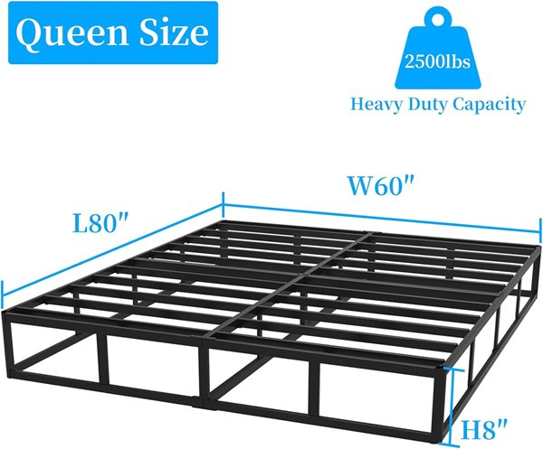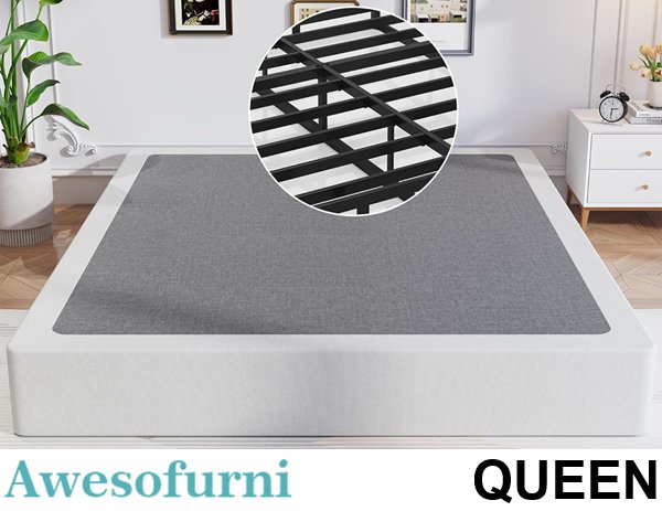 Awesofurni Heavy Duty Metal Frame Box Spring - Queen - 8" - BLACK (MODEL: YTT-BS08-Q)