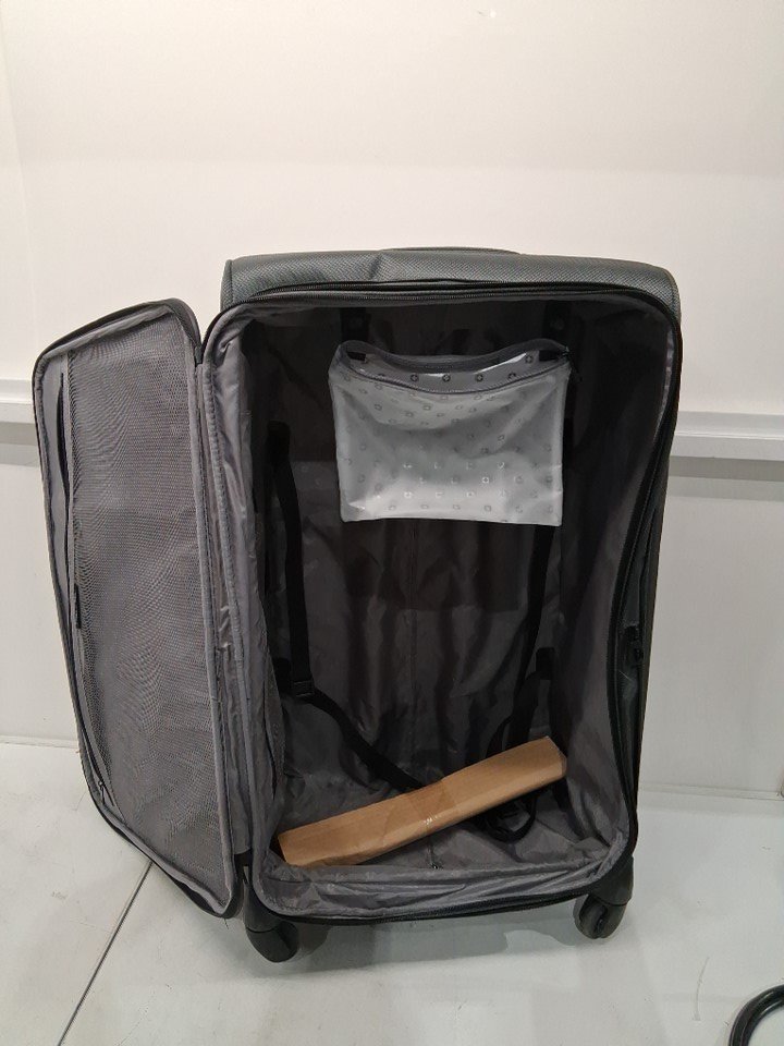 product has some scuff marks around the handle area, and the wheels shows signs of previous use (see photos)