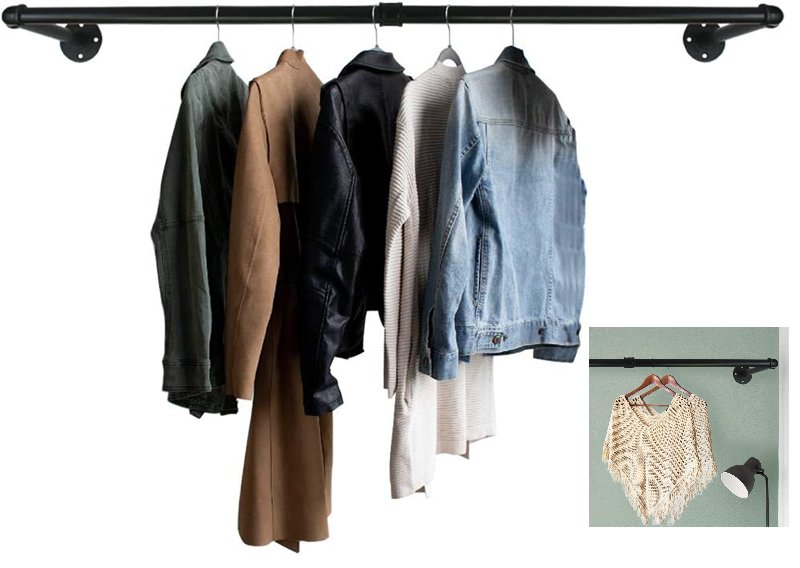 GEILSPACE INDUSTRIAL PIPE CLOTHES RACK - 48" - BLACK