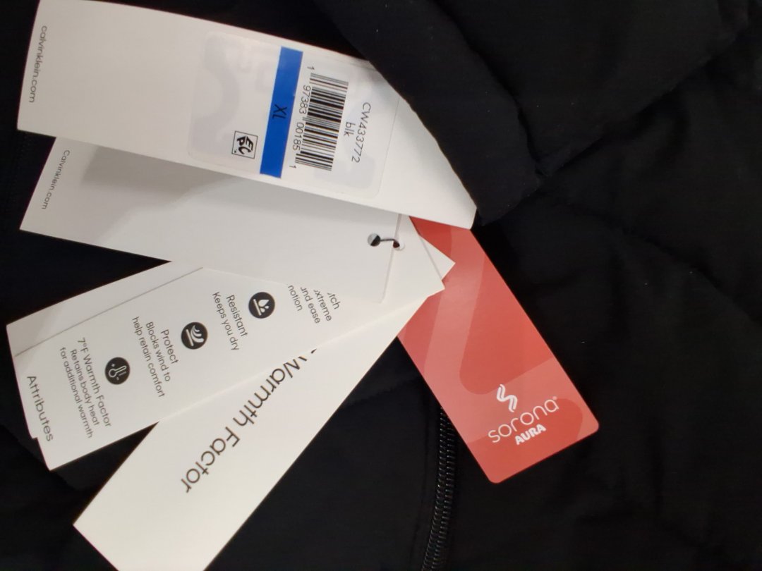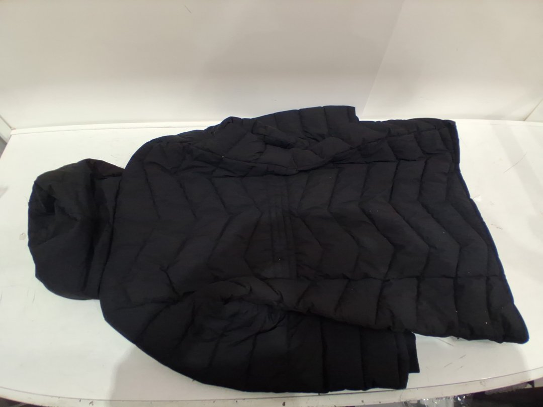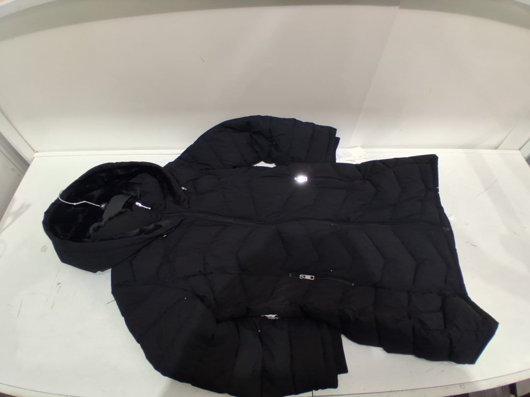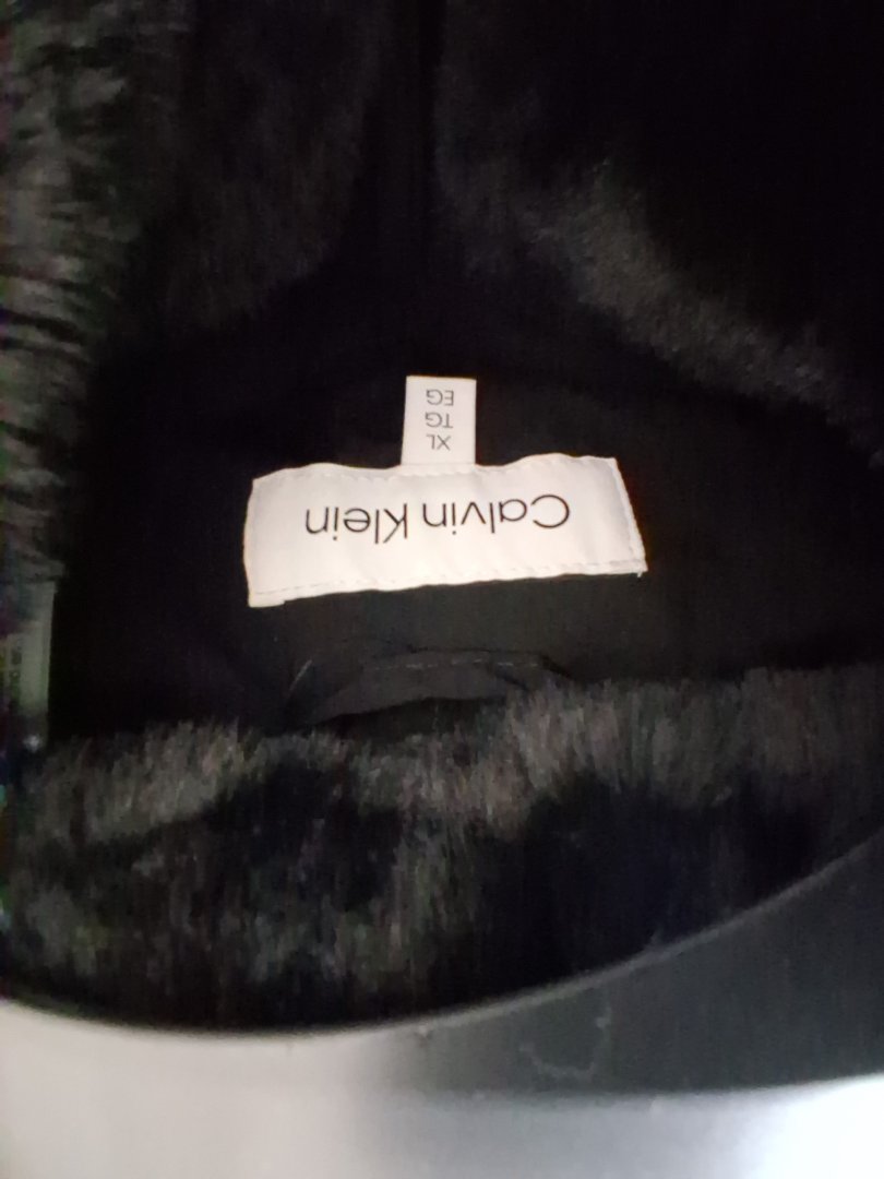 womens calvin klein kadin mont long puff zip-up winter jacket with hood - XL - black - (style: cw433772)