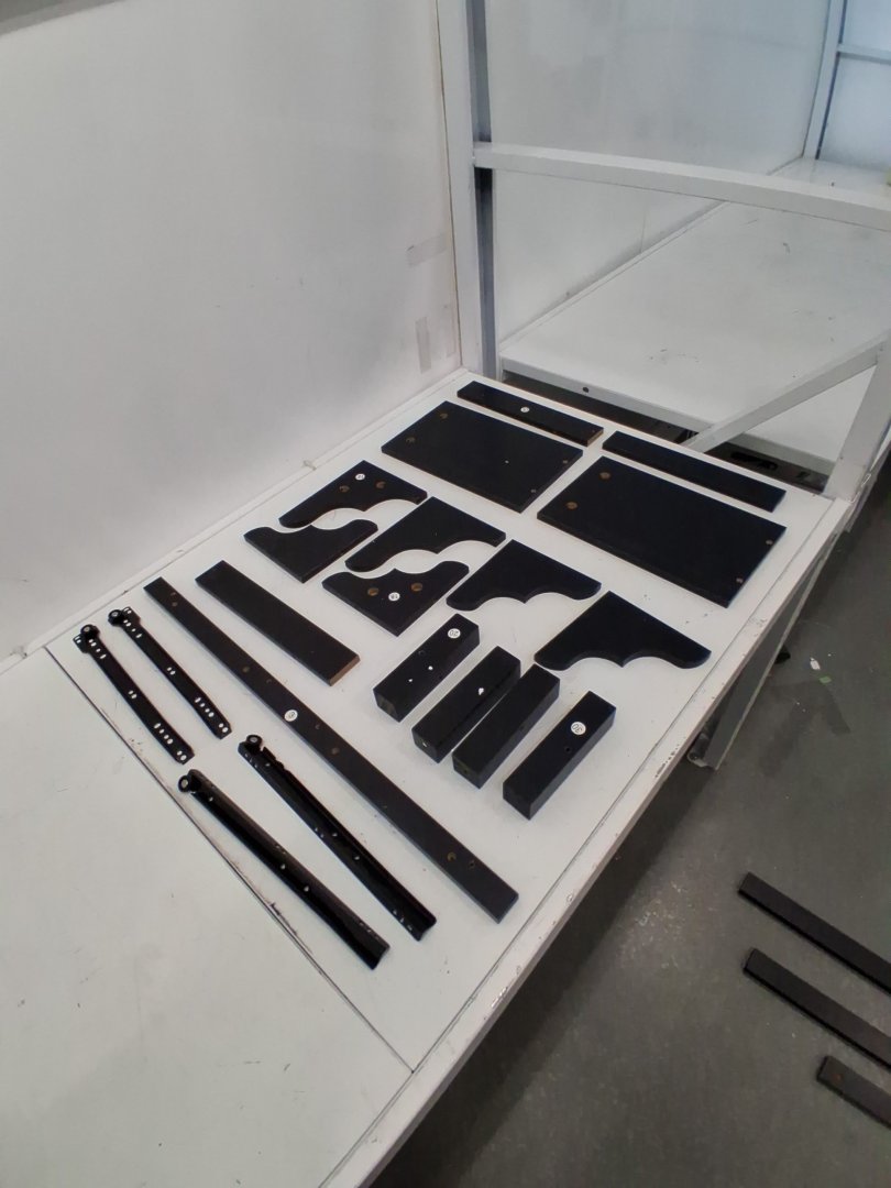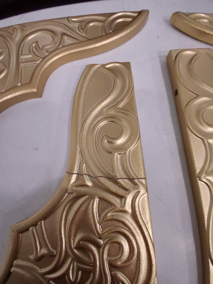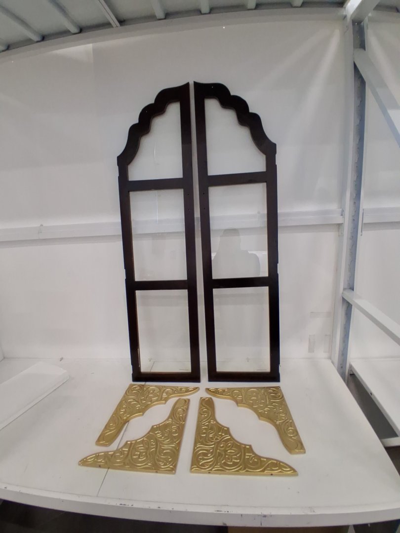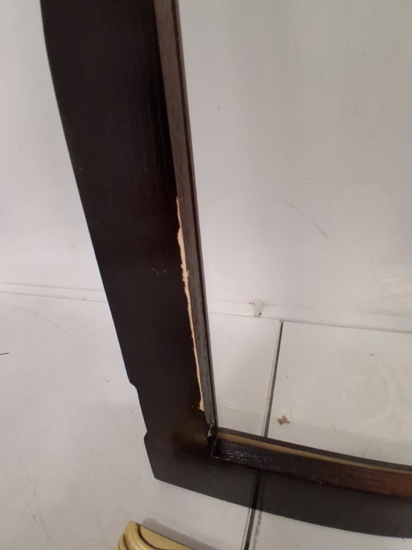 Chip on door and crack in moulding (See photos). May require additional hardware.
