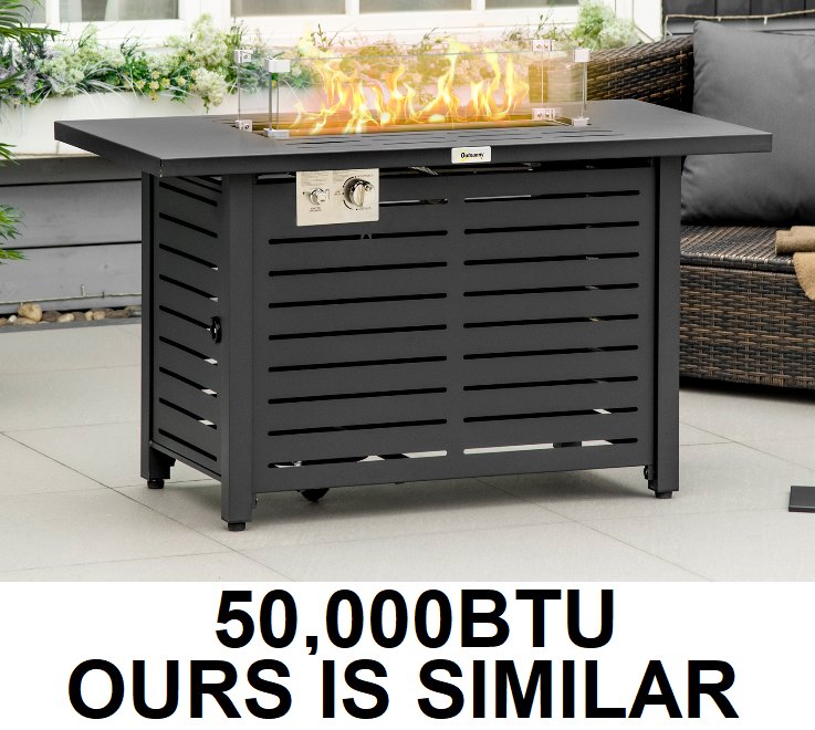 All parts for usage are present, we found no exact model information on this item meaning we had to use "ours is similar" in the main photo because we cannot 100% confirm that the firepit in the main photo is the exact same as the one from this listing, however we can confirm that this is a 43" firepit with 50,000btu and all vital parts for assembly and usage are present. see photos below.
