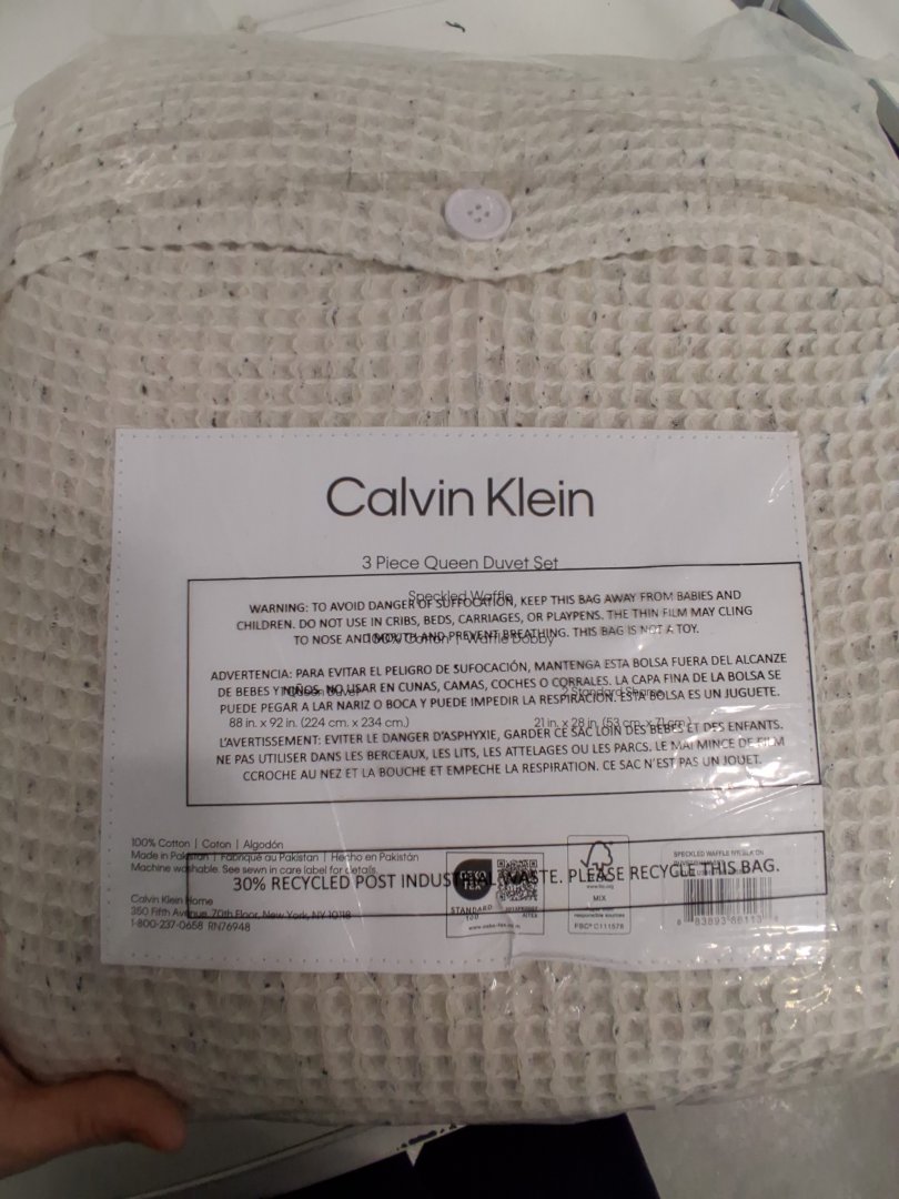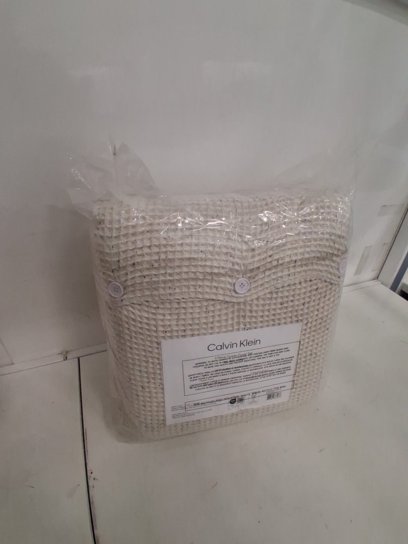 3pc calvin klein waffle knit duvet set with 1 duvet and 2 shams - queen - Speckled waffle beige