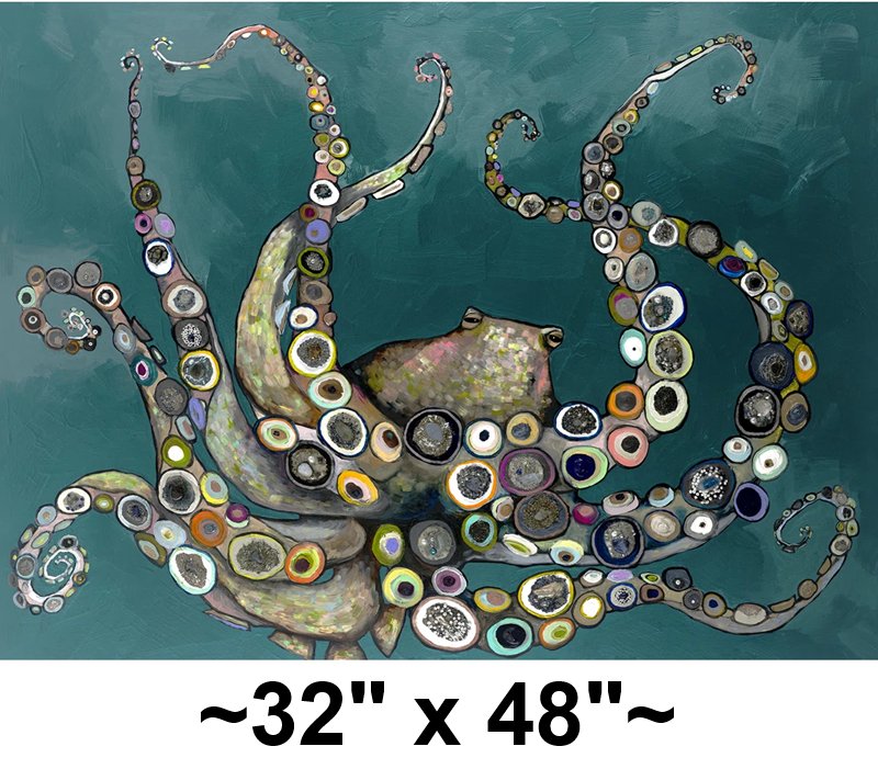 Breakwater bay " Octopus In The Deep Teal Sea " by Eli Halpin Painting Print - ~32" x 48"~