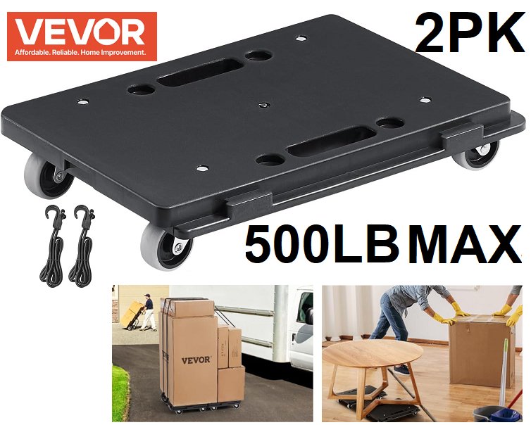 2pk vevor Heavy Duty Furniture Dolly - 500 lb max/each - black (model: wgs-50)