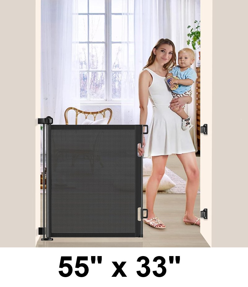 Retractable Baby Gates extra Wide for Large Opening Extra Long Mesh Gate for Kids or Pet Dog Gate Child Safety for Stairs Hallways Doorway Indoor Outdoor - Black - 55" x 33"