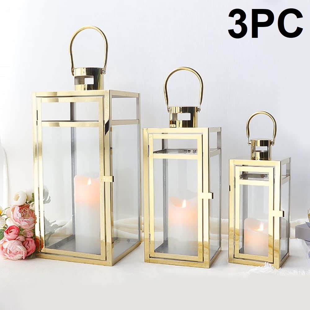 3pc Trirocks outdoor hanging lantern set - Different sizes - GOLD - (Model - 4255B)