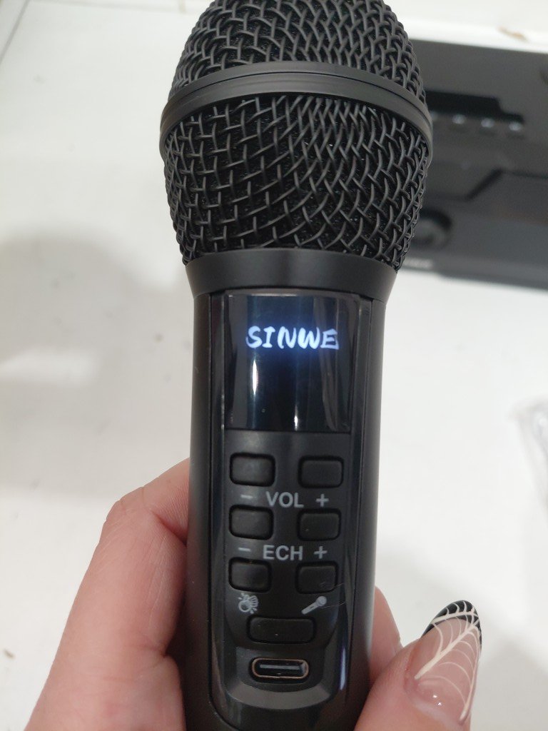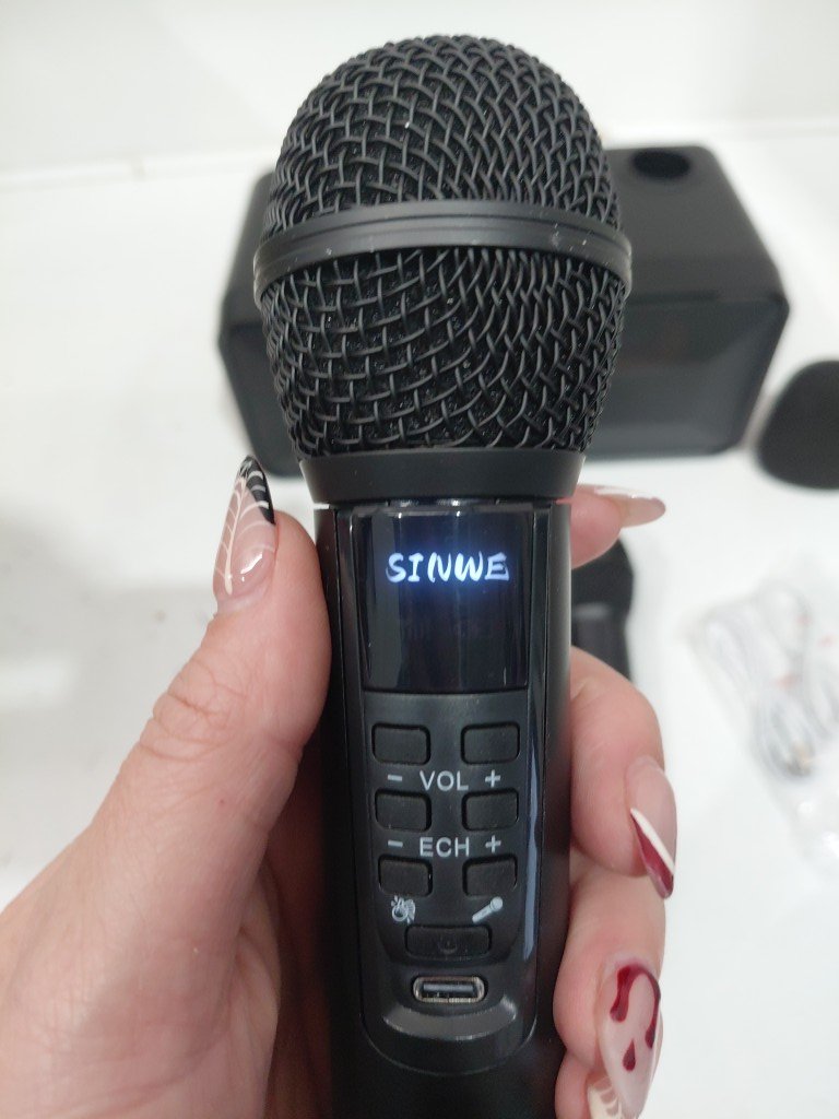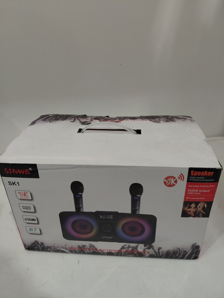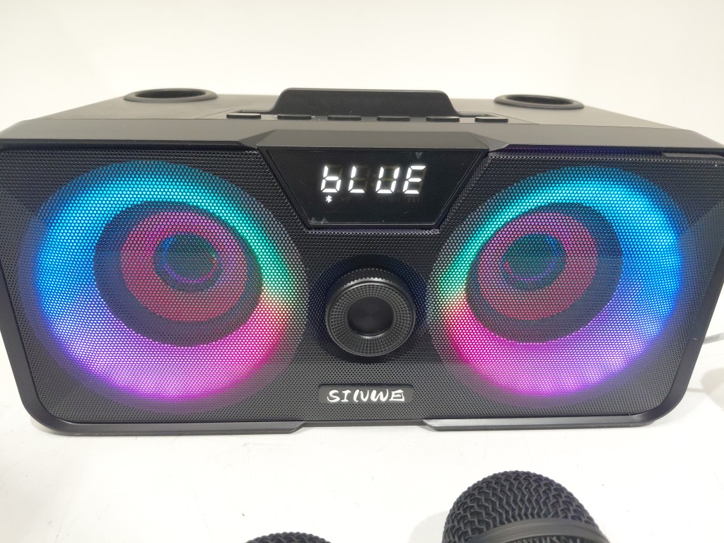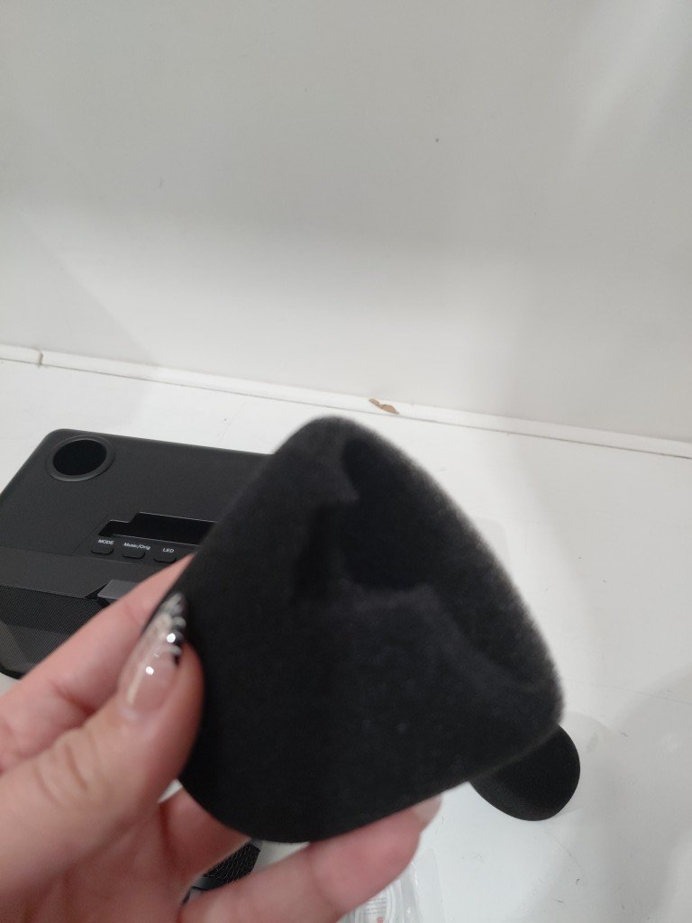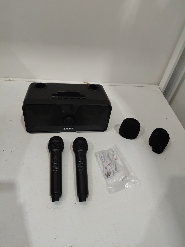 One mic's foam part has a small gouge out of it (see photos0 tested for power , function & bluetooth item will need to be fully charged before use