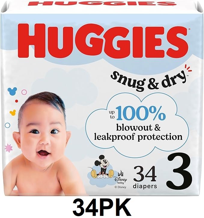 34pk huggies snug and dry baby diapers - size 3 (16-28lb) - disney baby mickey mouse