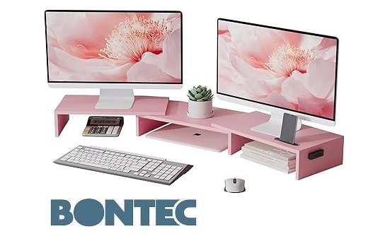 BONTEC Dual Monitor Stand Riser with Smartphone Holder - 16.9" x 10" x 2.5" - pink (model:MTR-S3)