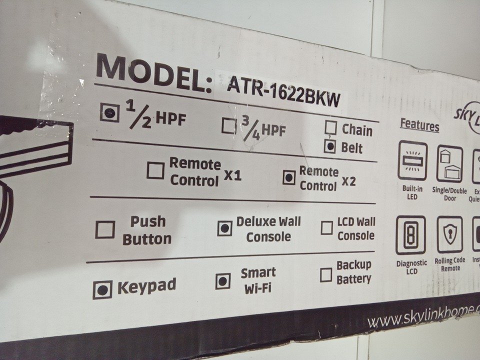 SKYLINK Atoms 1/2 HPF Garage Door Opener with Extremely Quiet DC Motor, Built-in LED Light, Remote Controls, Deluxe Wall Console, Chain Drive, White (MODEL: ATR-1622BKw)