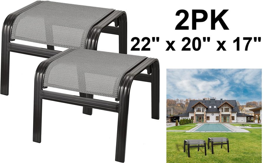 2PK DEGUIFEI OUTDOOR PATIO ALUMINUM/WICKER OTTOMANS FOOTREST - 22" X 20" X 17" - GREY