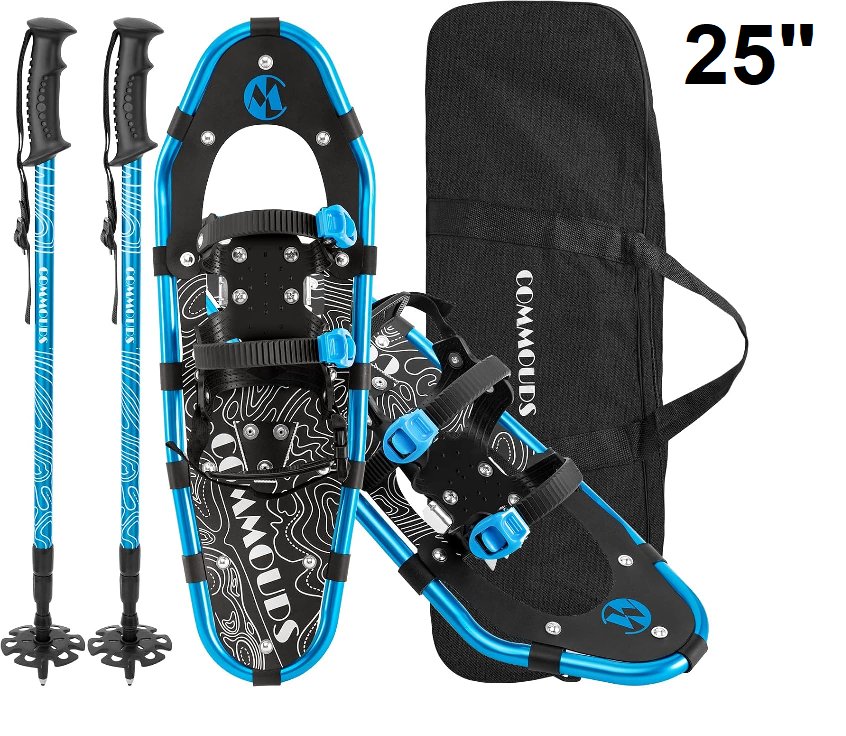 adult unisex commouds lightweight Aluminum All Terrain Snowshoes and pole set - 25" Up to 250lbs - black/blue