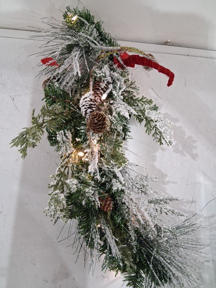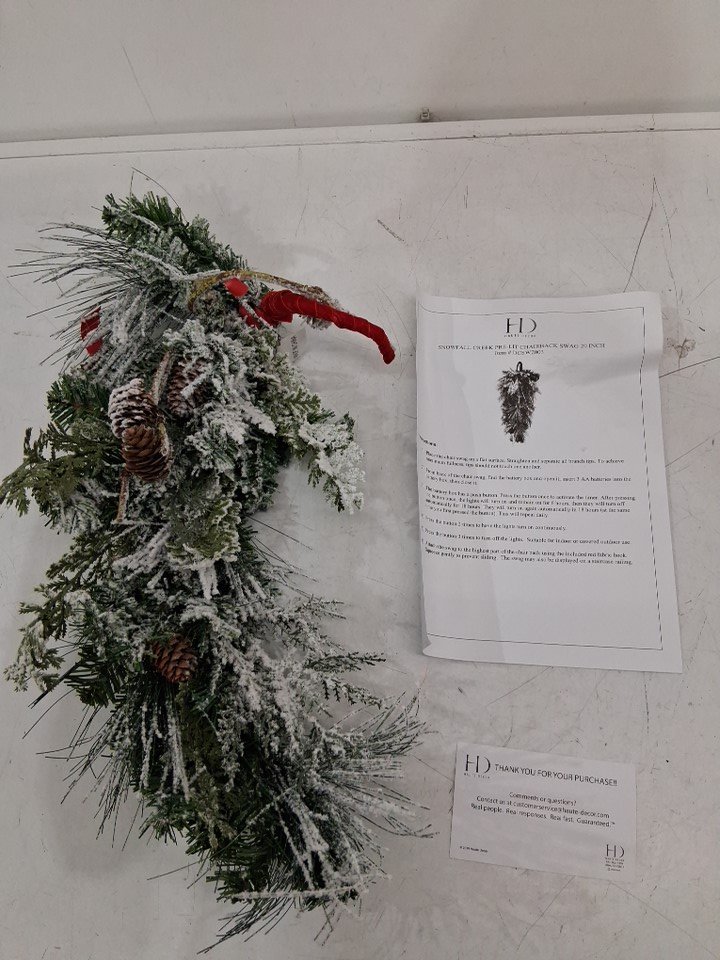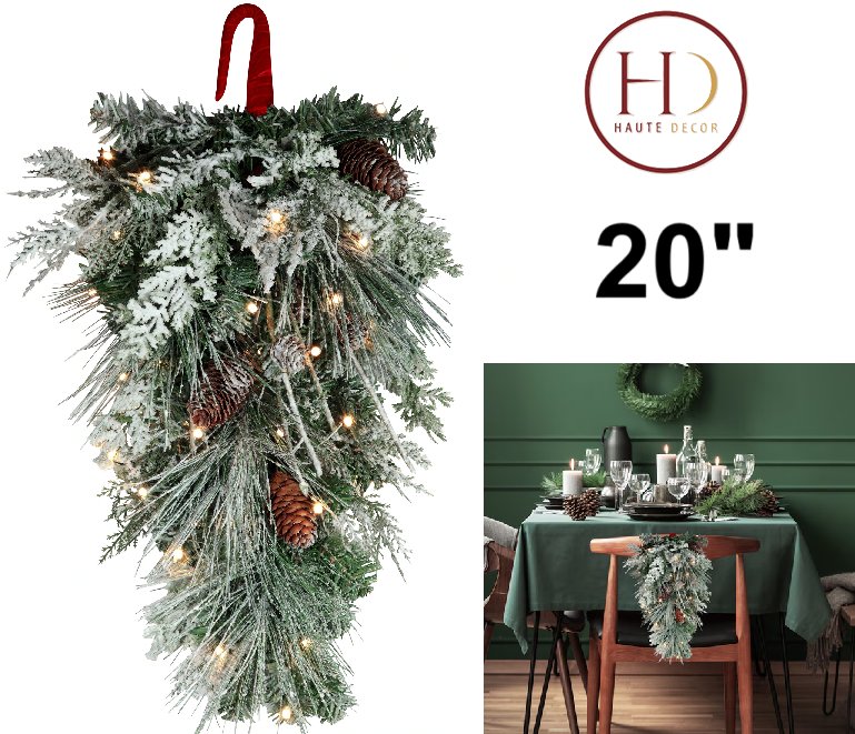 Haute Decor Battery Operated Timer Lighted Hanging Wreath - 20" - 6 Hour On/18 Hour Off - White/Green (Model: DCSW2003)