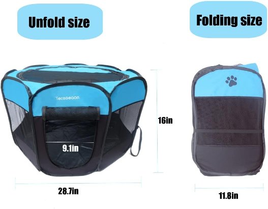 TECAGEAON SOFT mesh PET playpen - 28.7" x 16" - blue/black