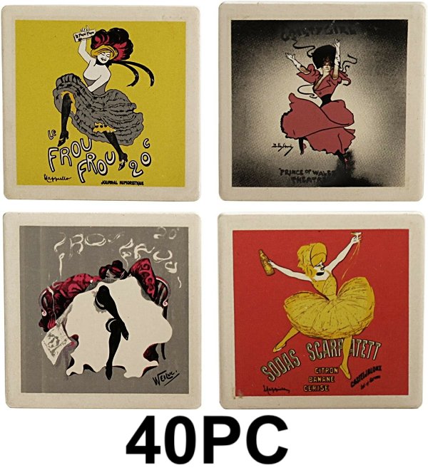40PC ARI Antique Reproduction Poster Art Drink Table Coasters - French Can-Can Girls (Model: CD2803)