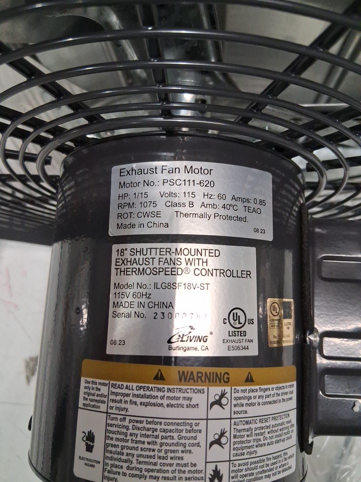iLIVING Wall Mounted Shutter Exhaust Fan with Thermostat and Variable Speed controller - 18" - silver- (model:ILG8SF18V-ST)