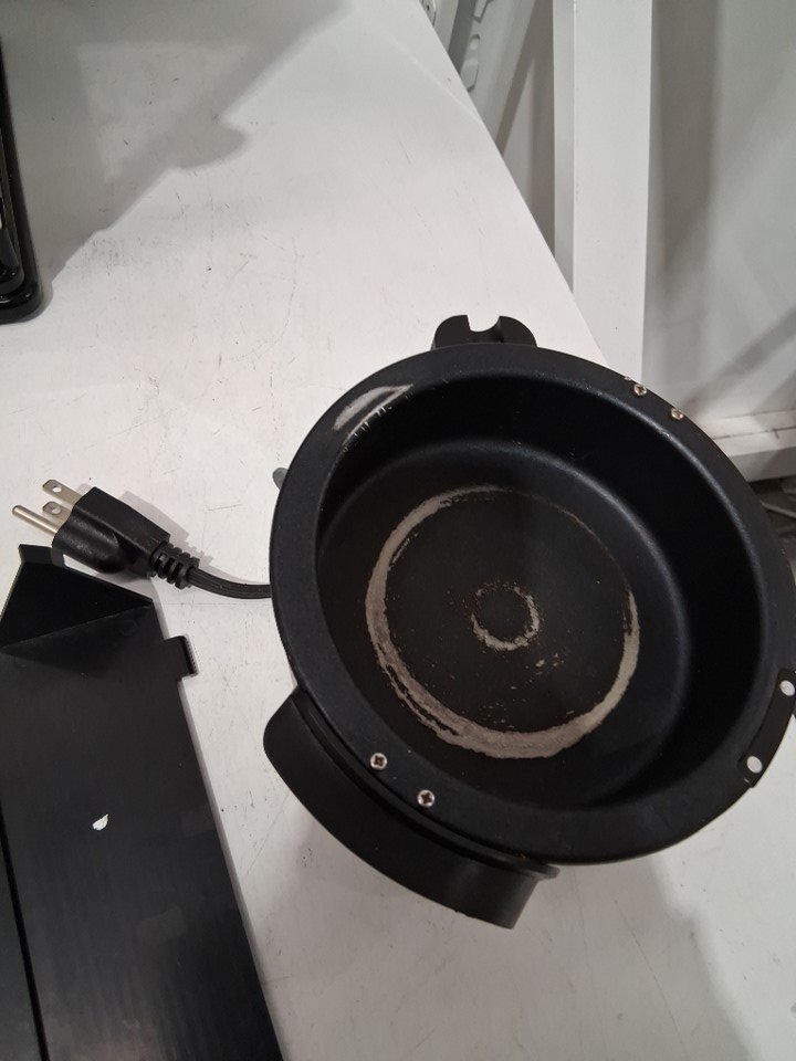 it has oil and other food residue on it, scratches and has smell, tested for power only