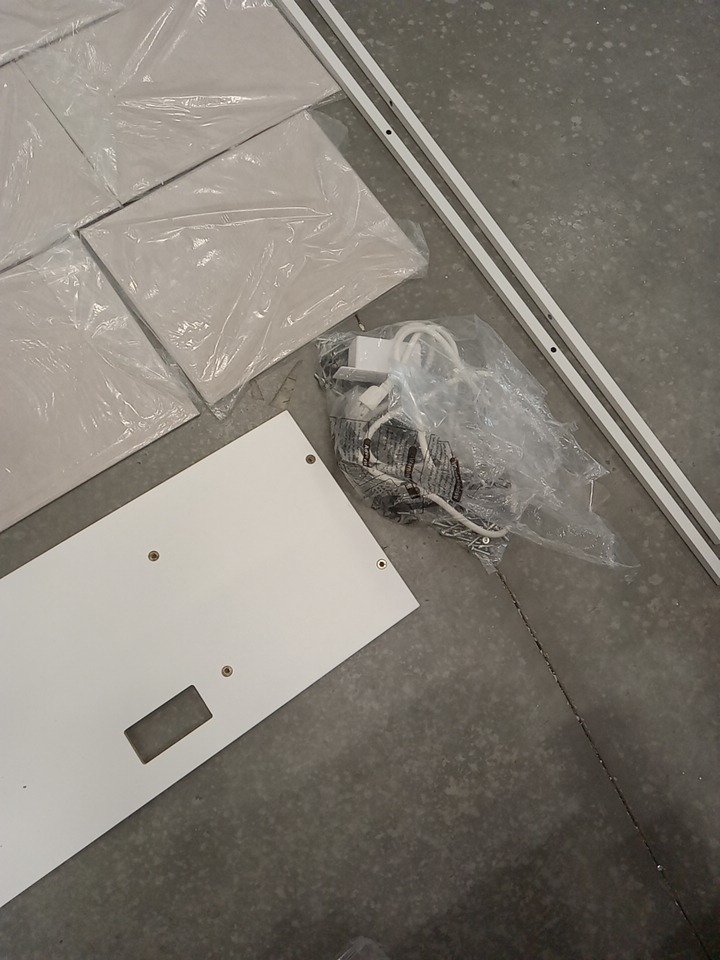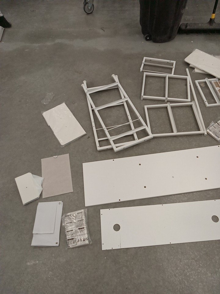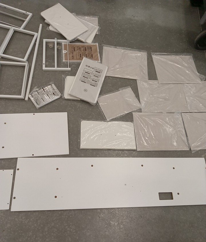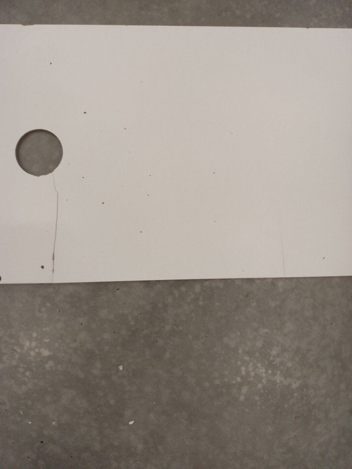 there are a few assembly marks, and the back panel has two cracks in it, but it should still be useable. please see photos
