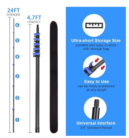 DOBEN Telescoping Pole for Painting, CLEANING with Universal Threaded Head, 4.7FT- 24ft - CARBON FIBER